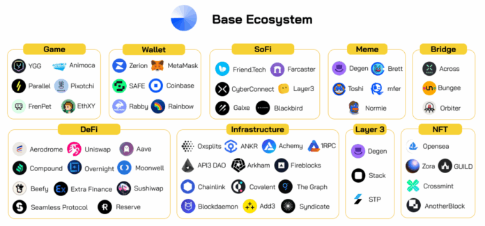 Kể từ khi ra mắt, hệ sinh thái Base đã chứng kiến sự bùng nổ mạnh mẽ với hàng trăm dự án được triển khai. Trong lĩnh vực DeFi, các sàn giao dịch phi tập trung như Aerodrome và Uniswap V3 đã thu hút hàng trăm triệu đô la thanh khoản. Lĩnh vực NFT và SocialFi cũng vô cùng sôi động với các nền tảng như Friend.tech, tạo ra những xu hướng mới trong việc xã hội hóa tài sản số và tương tác cộng đồng.
